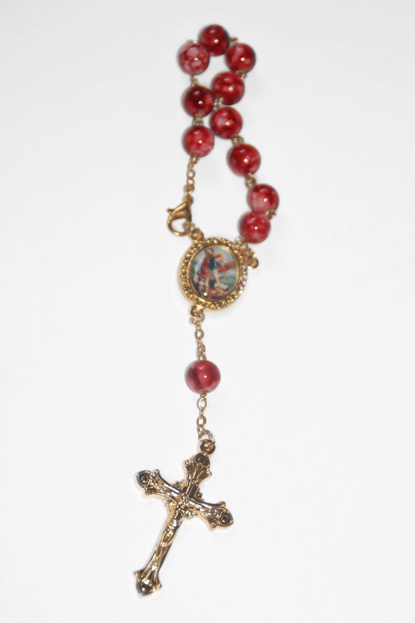 One-decade car rosary made of glass beads with a colour medal of Saint Michael.
