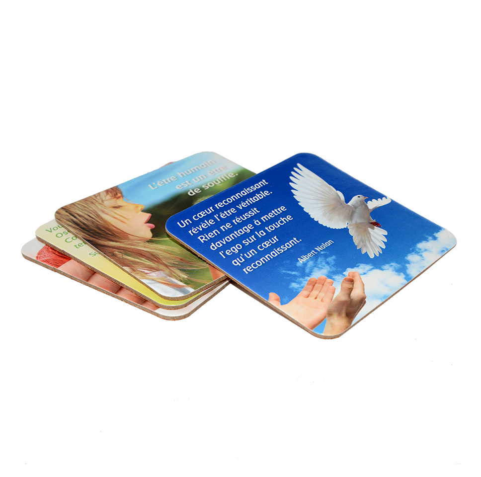 Each coaster has a different image and thought.