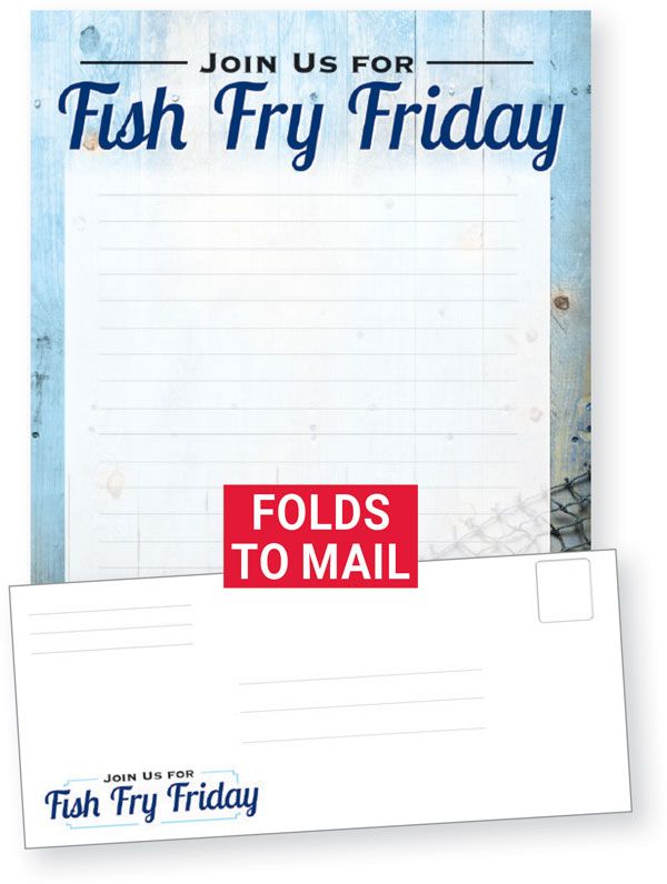 Planning a Friday Fish Fry? Reel in the community with these handy and beautifully designed fliers. One side of the flier is an advertising poster with ample space for dates, times and other important details to be filled out by you. Hang up the poster around the neighborhood or fold it to create a ready-to-mail informational flyer for every family in your church.
