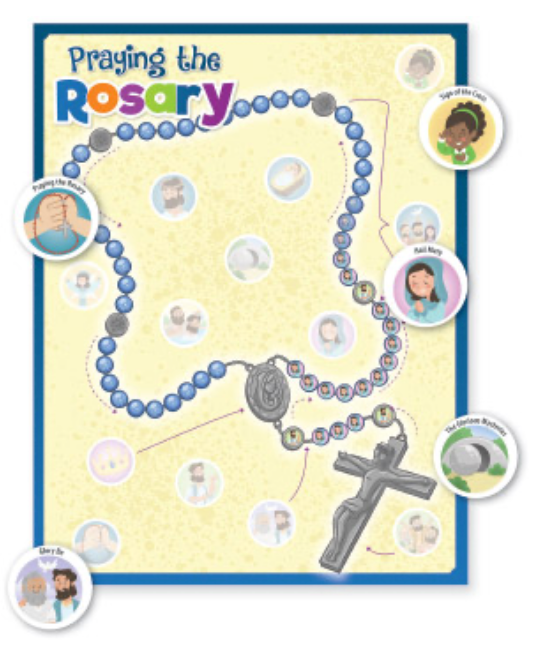Invite the youngest children in your parish to learn the practice of praying the Rosary in this resource designed especially for them. A brief explanation of each prayer is written on the back of the Rosary poster. As they pray their way through the Rosary, children add a sticker to complete the beautifully illustrated sheet. Perfect for PSR classes or parents who want to introduce the practice of praying the Rosary with their youngest children.