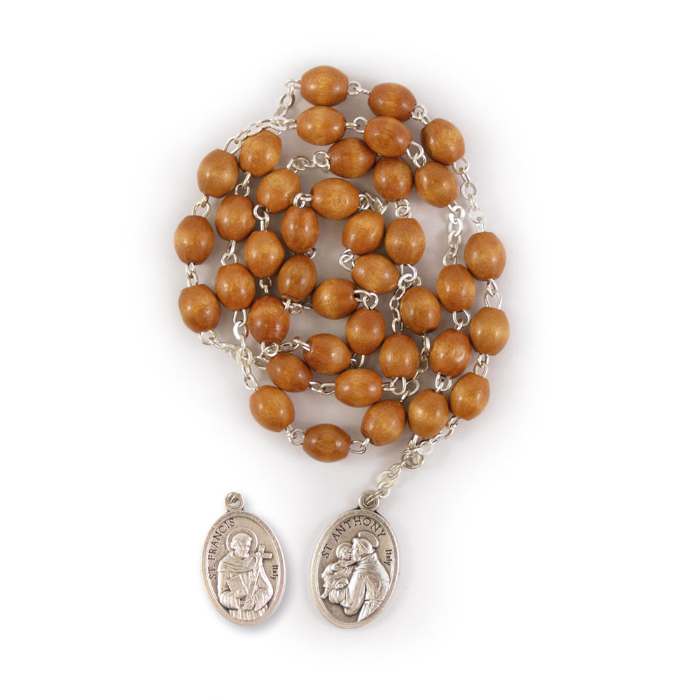 Wood rosary with prayer to Saint Anthony of Padua.