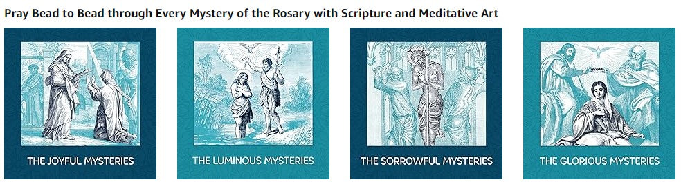 “What an excellent book, filled with beautiful religious art!  This is a must-have book for all who pray the Rosary: beginners, intermediates, and advanced. It is chock-full of scriptural quotations that will take you deeper into the wonder of the Greatest Story Ever Told: the life of Jesus, Mary, and Joseph on earth.”