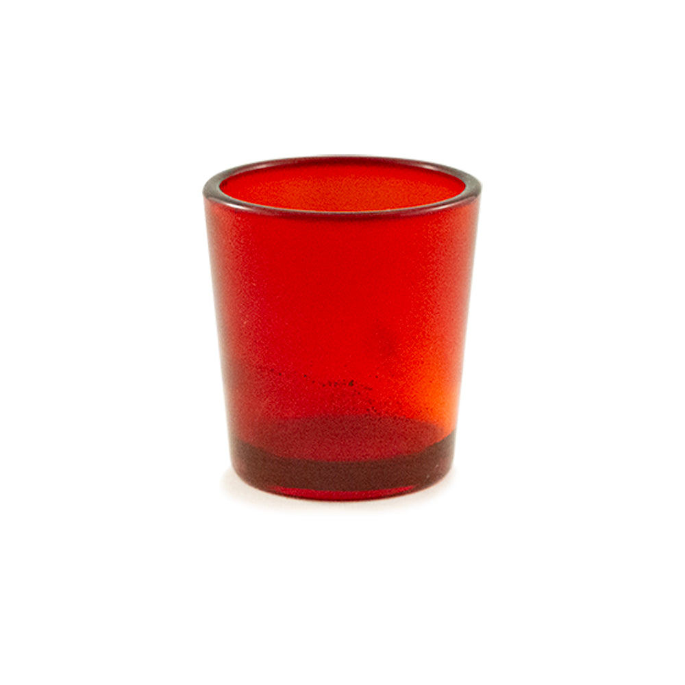 Glass container for 15 hour votive. Available in 5 colours. Height 6cm.