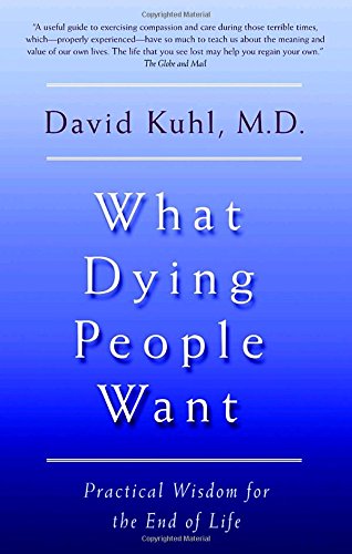 Based on research funded by the Soros Foundation's Project on Death in America and extensive interviews with dying people, an internationally renowned palliative care physician offers guidance on changing how we deal with death. Facing death results in more fear and anxiety than any other human experience. Western medicine has accomplished a great deal in addressing physical pain and symptom management for people with a terminal illness, but much slower progress has been made in understanding or alleviating psychological or spiritual distress. In What Dying People Want, Dr. David Kuhl begins to bridge that gap by addressing end-of-life realities through his own experiences and through the words and experiences of dying people. He presents ways of addressing the pain, of finding new life in the process of dying and of understanding the inner reality of living with a terminal illness. He acknowledges the despair and recognizes the desire for hope and meaning. Dr. Kuhl also makes the provocative case that insensitive communication by doctors creates more suffering for patients than either the actual illness or the knowledge of impending death and offers guidance on preventing painful interactions.This is not a feel-good book about how we are deepened by a loved one's death. It is not a book about the last few days or moments. This is a book about what the day-to-day experience of living with a terminal illness is like over a long period of time. It will offer guidance, solace, and helpful strategies for terminally people and their families and caregivers.D. Kuhl, David Kuhl